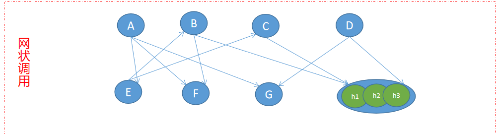 上面已经说明了RPC的调用过程,即实现方式,其实在实际工作中,服务节点的RPC调用错综复杂,会变成如下所示的网状调用:
